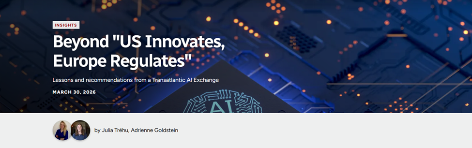 Julia Tréhu and Adrienne Goldstein discuss these findings from GMF Technology’s Transatlantic Tech Exchange (TTX) in “Beyond ‘US Innovates, Europe Regulates’: Lessons and recommendations from a Transatlantic AI Exchange”. Drawing on insights from high-level meetings with European AI leaders, they recommend that the United States and the EU launch an AI dialogue to address issues of shared interest, invest in AI policy experts to advise lawmakers, and gather real-world data on the economic impacts of AI.